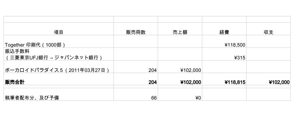 本の印刷費は「とらのあなでの委託」「ボーカロイドマスター16での頒布」から差し引かせて頂きます。