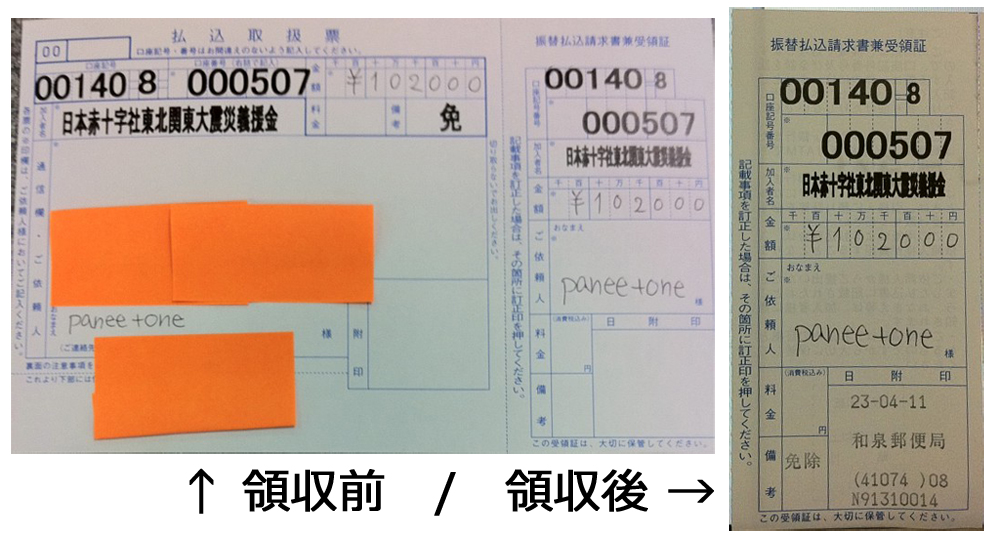 「panee+one」としての名義で寄付させて頂きました。